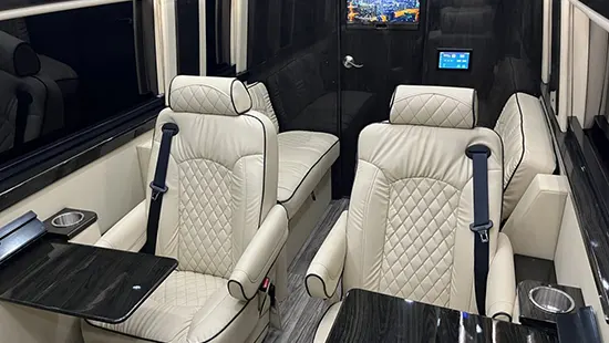 Everything your group needs for comfortable, no-fuss travel. Features luxurious, front-facing seats and privacy tinting, without the extra amenities found in our other Sprinter vans. Seats up to 15.